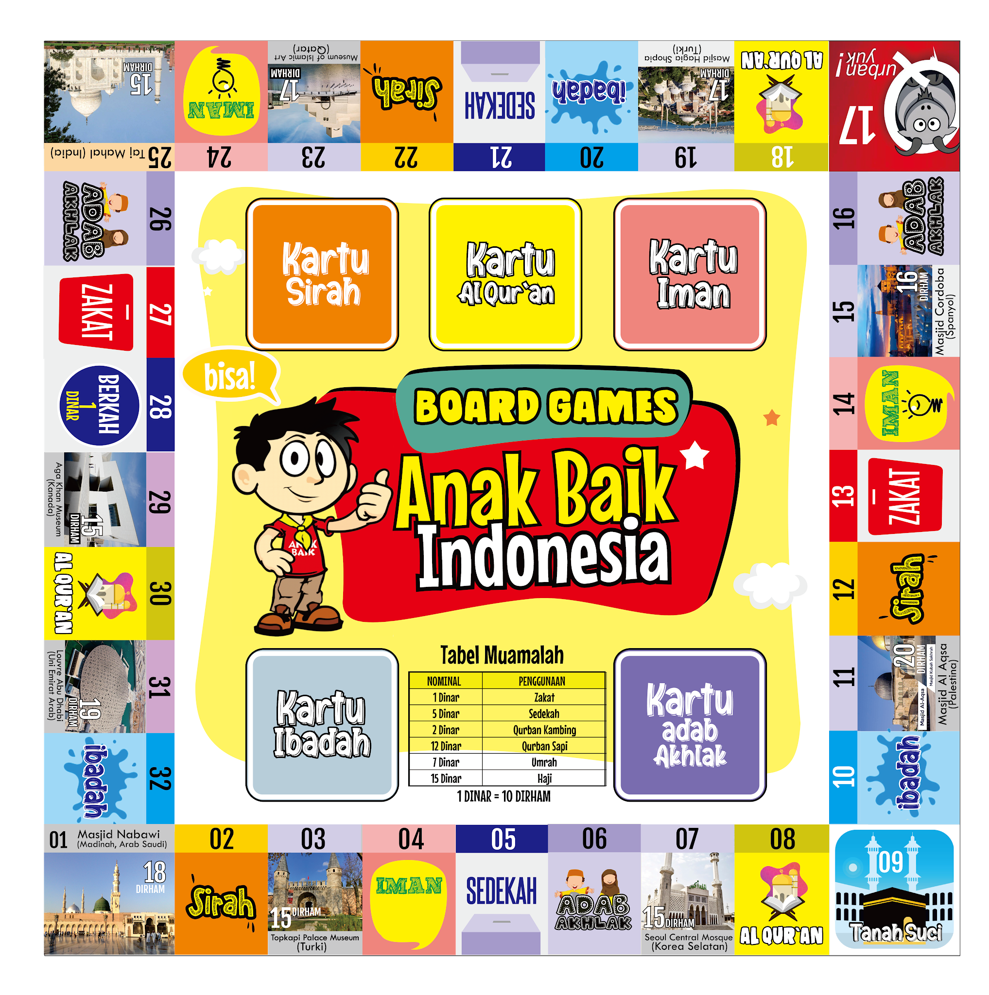 Board Games Anak Baik Indonesia adalah sarana petualangan #dirumahaja yang akan menambah keseruan bersama keluarga dan teman yang sarat akan nilai-nilai kebaikan untuk menjaga motivasi belajar, memiliki Akidah yang Lurus, Ibadah yang benar serta Akhlak Mulia sehari hari.