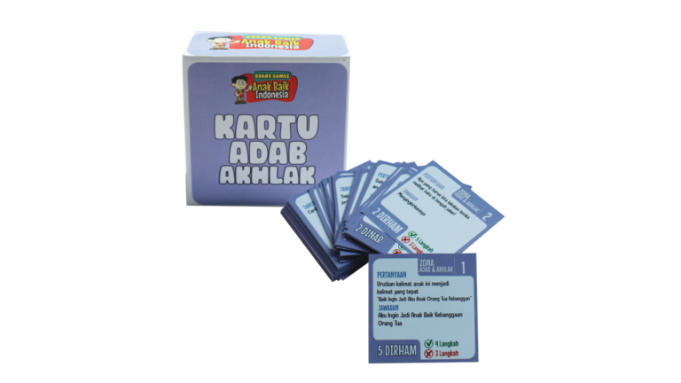 Kartu ini dibuat dengan bahan art carton 210 gram, disempurnakan dengan Box Kartu khusus untuk memastikan Kartu ini tidak mudah hilang. Terdiri dari Edukasi Pengetahuan Tentang Adab dan Akhlak, Motivasi mudahnya menjadi Anak Baik, Tantangan Seru dan Aksi Kebaikan Adab dan Akhlak sehari hari. Di Zona ini kebiasaan baik kita akan sangat membantu kita untuk memiliki tabungan akhirat lebih besar.